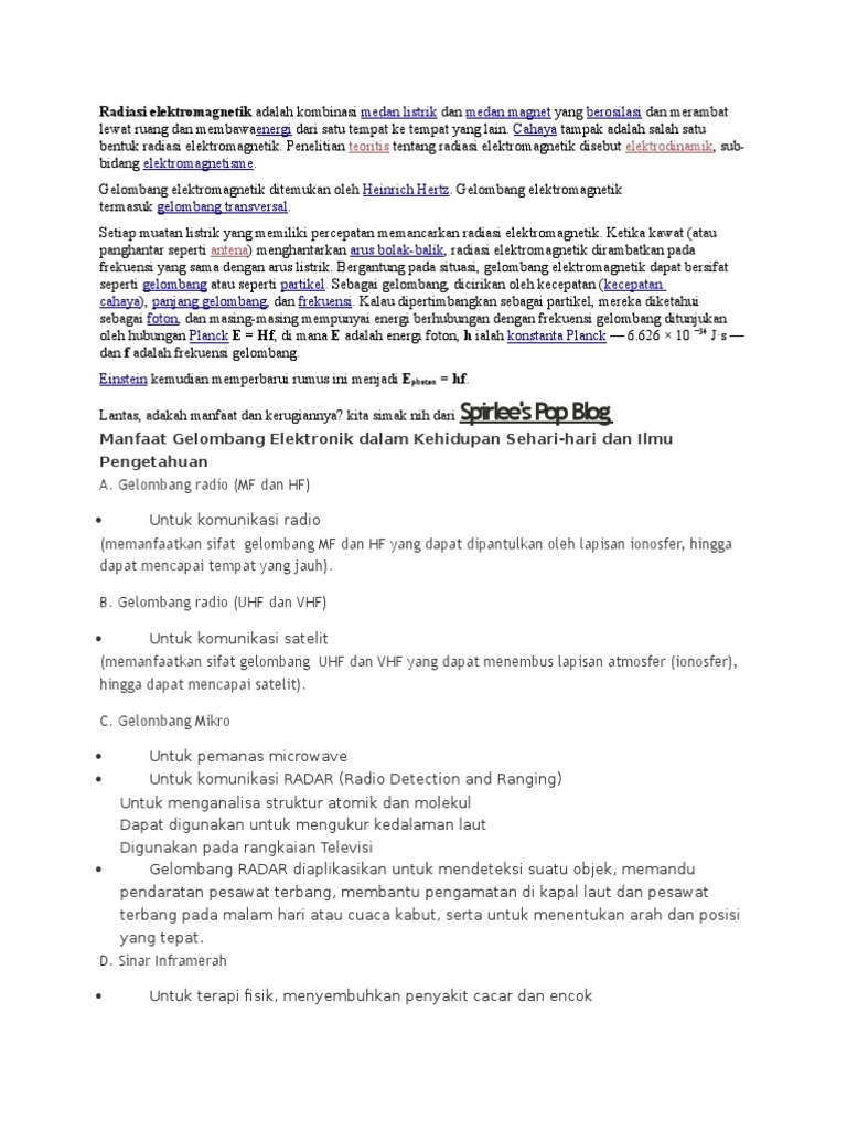Little Book Gelombang Elektromagnetik Bahasa Indonesia from 2.bp.blogspot.com We would like to show you a description here but the site won't allow us. Gelombang ini melintas, dan merambat lewat udara, dan bisa juga merambat lewat ruang angkasa yang hampa udara, karena gelombang ini tidak memerlukan medium pengangkut (seperti molekul udara). 100o c frekuensi gelombang tersebut adalah … Jun 20, 2021 · untuk komunikasi radio memanfaatkan sifat gelombang mf dan hf yang dapat dipantulkan oleh lapisan ionosfer hingga dapat mencapai tempat yang jauh. Gelombang radio (mf dan hf) untuk komunikasi radio (memanfaatkan sifat gelombang mf dan hf yang dapat dipantulkan oleh lapisan ionosfer, hingga dapat mencapai tempat yang jauh). Entdecke rezepte, einrichtungsideen, stilinterpretationen und andere ideen zum ausprobieren. Penghubung listrik didesain untuk bekerja pada frekuensi radio yang dikenal sebagai penghubung rf. Sunlight, at an effective temperature of 5,780.